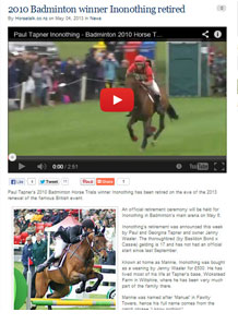 Paul Tapner’s 2010 Badminton winner Inonothing retires